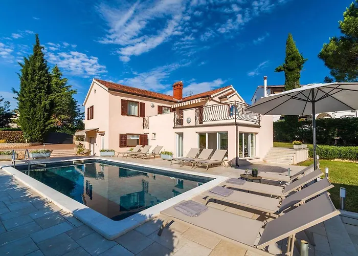 Die 6-Zimmer- Villa Rosy Rovinjsko Selo liegt rund 7 Kilometer von der Altstadt von Rovinj entfernt und bietet eine Sauna, die für einen entspannten Aufenthalt sorgen. Die Villa bietet eine Terrasse und liegt circa 15 Autominuten vom Balbi-Bogen entfernt.